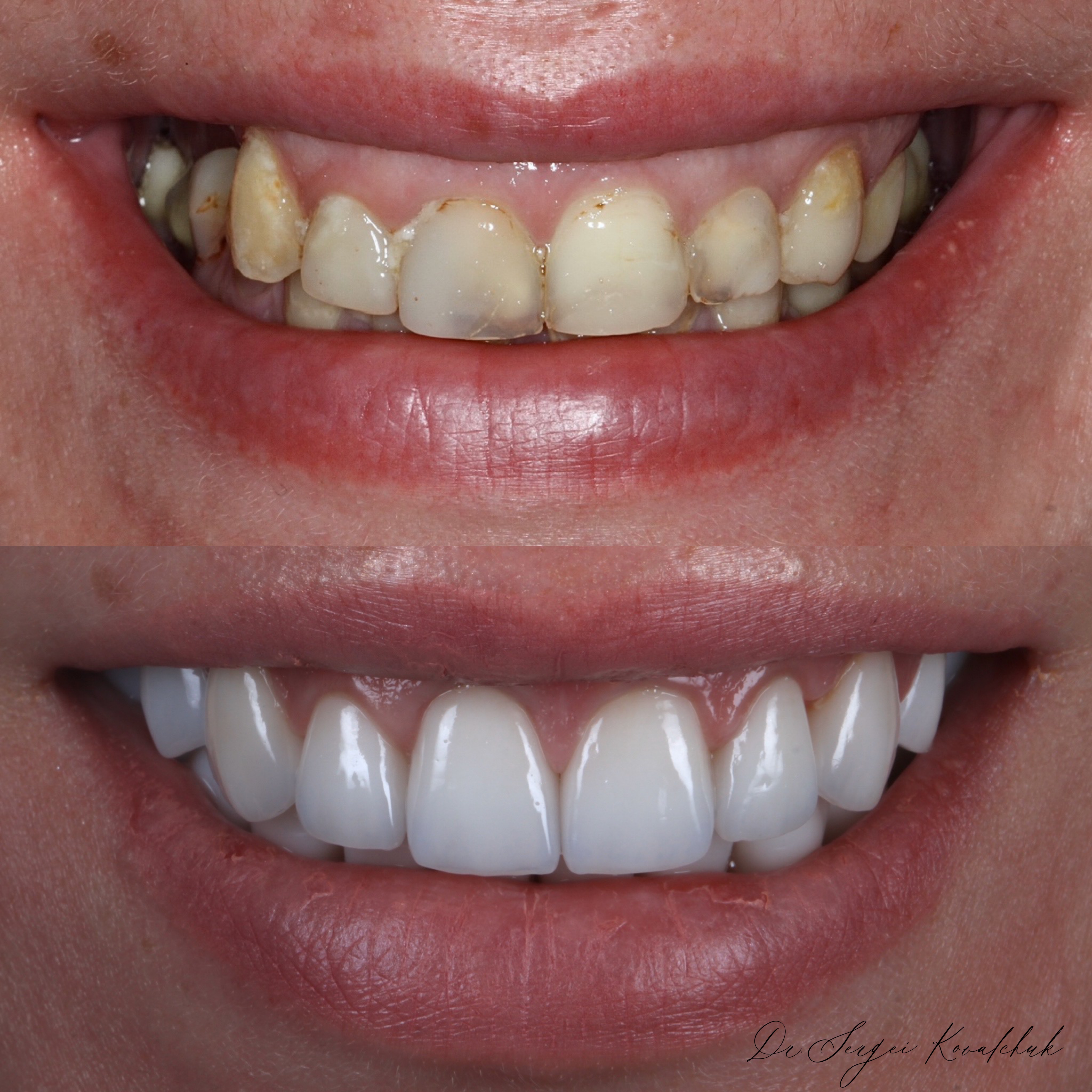 Мы с вами выбираем форму, цвет и яркость будущей улыбки и покрываем зубы керамическими реставрациями(винирами, накладками и коронками) а так же ставим коронки на имплантах