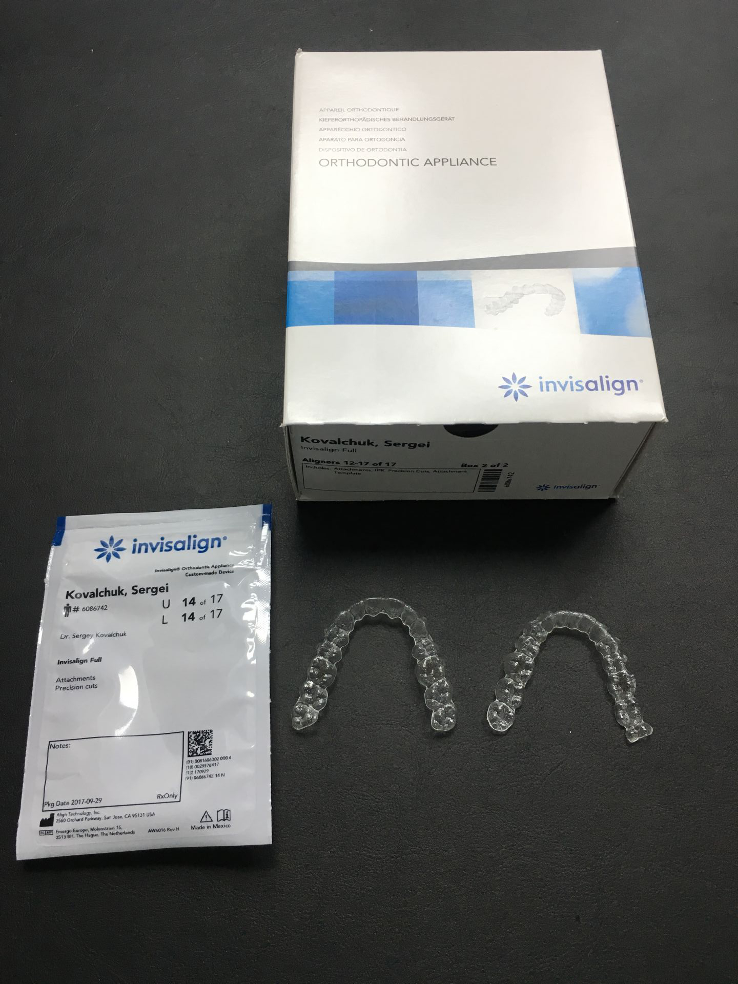 Invisalign состоит из набора индивидуальных, практически невидимых, съёмных капп(элайнеров), сменяемых 1 раз в 2 недели. Элайнеры за этот срок перемещают зубы до рассчитанного положения, после чего пациент меняет их на следующую пару.